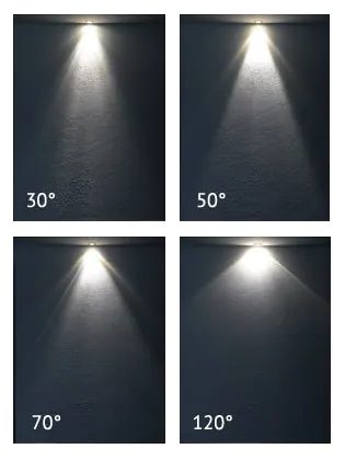 Once you know your current wattage and the color you prefer it’s important to know where you are using the light for. This is because every spot has a different ‘beam angle’. The beam angle of a lamp is the angle at which the light is distributed or emitted. The smaller the angles in degree (D), the narrower the beam. So a smaller beam angle is to highlight your paintings or art. And a wider beam angle is for general lighting. The most commonly used beam angle for general lighting is the one between 24 and 40. Click here to read more about beam angles.
