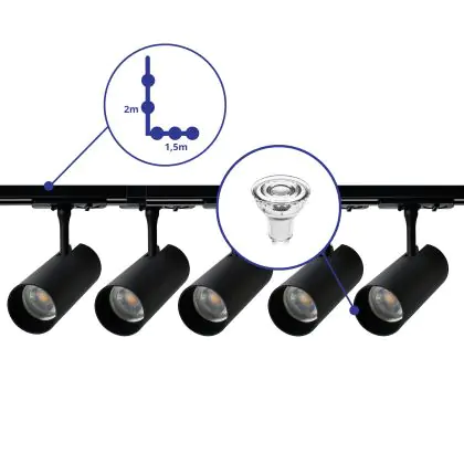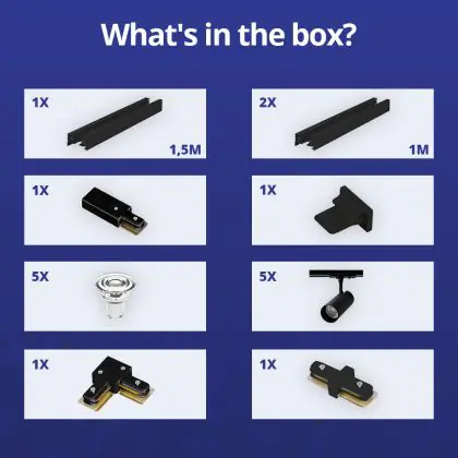| Manufacturer Name | Complete L shaped 1-Phase Track Set Black incl. 5x Spot fixture + GU10 2700K 3W Dim – 1,5 x 2 meter | |