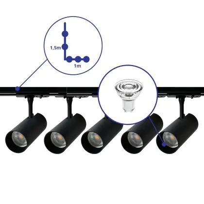 | Manufacturer Name | Complete L shaped 1-Phase Track Set Black incl. 5x Spot fixture + GU10 2700K 3W Dim - 1 x 1,5 meter | |