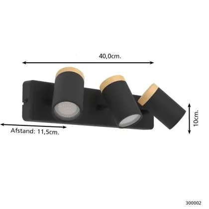 Eglo Ceiling Light Consuma Black, Brown | Suitable for 3x GU10