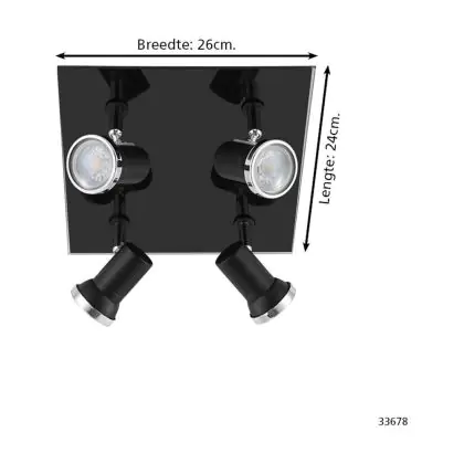Eglo Ceiling Light Tamara 1 Steel Black Chrome 4x2.8W 4x250lm - 830 Warm White | IP44 - Incl. 4x GU10
