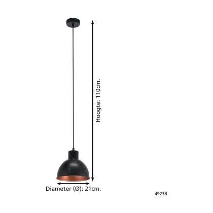 Eglo Pendant Truro 1 Steel Black Copper | IP20 - Suitable for 1x E27