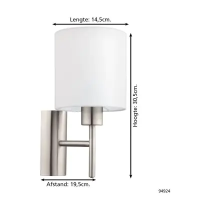 Eglo Wall Light Pasteri Steel Satin Nickel | IP20 - Suitable for 1x E27
