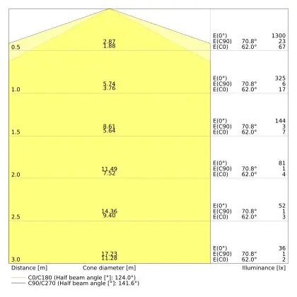 ![]() The colour code is a combination of colour rendering (CRI) and light colour (Kelvin). The first number indicates the colour rendering (1 = very poor colour rendering, 9 = maximum colour fastness). The second and third number contains the light colour. Example: the colour code 830 consists of good colour rendering (8) and warm white light (3000K). |