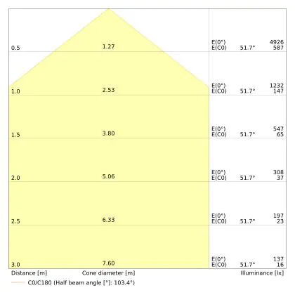 Beam angle of 100°