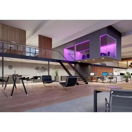 The Unified Glare Rating (UGR) indicates the extent to which the light of a product is blinding. This value differs per application and must comply with European standards (EN 12464-1). A low UGR value stands for a low glare factor. For offices and schools lighting with a UGR<19 value is mandatory and for public areas UGR<22.