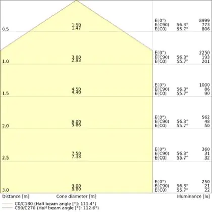 ![]() The colour code is a combination of colour rendering (CRI) and light colour (Kelvin). The first number indicates the colour rendering (1 = very poor colour rendering, 9 = maximum colour fastness). The second and third number contains the light colour. Example: the colour code 830 consists of good colour rendering (8) and warm white light (3000K). |