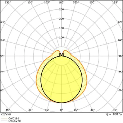 The Luminous Efficacy (lm/W) indicates how efficiently a light source uses energy. We divide the number of lumens by the wattage. The higher the number, the more efficient a product is in terms of energy consumption. LED lighting has a considerably higher lumen/Watt ratio than conventional lighting.