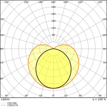 The Luminous Efficacy (lm/W) indicates how efficiently a light source uses energy. We divide the number of lumens by the wattage. The higher the number, the more efficient a product is in terms of energy consumption. LED lighting has a considerably higher lumen/Watt ratio than conventional lighting.