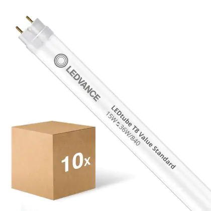 Multipack 10x Ledvance LED Tube T8 Value (EM/Mains) Standard Output 15W 1800lm - 840 Cool White | 120cm - Replaces 36W
