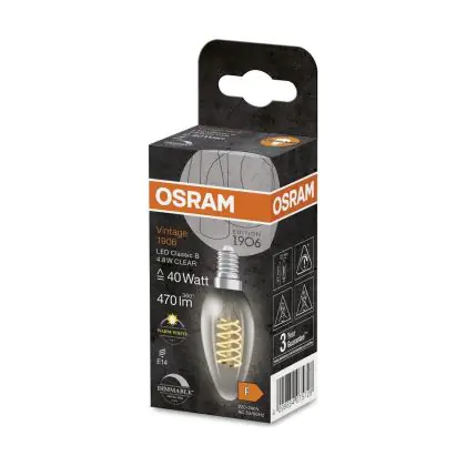 Osram Vintage 1906 LED Classic Slim E14 Candle Filament Clear 4.8W 470lm - 827 Extra Warm White | Dimmable - Replaces 40W