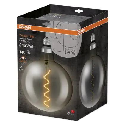 Osram Vintage 1906 LED E27 Globe Filament Smoke 200mm 5W 110lm - 818 Extra Warm White | Replaces 25W