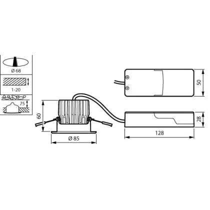 Cut out (mm) | 68 |